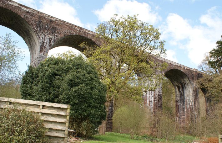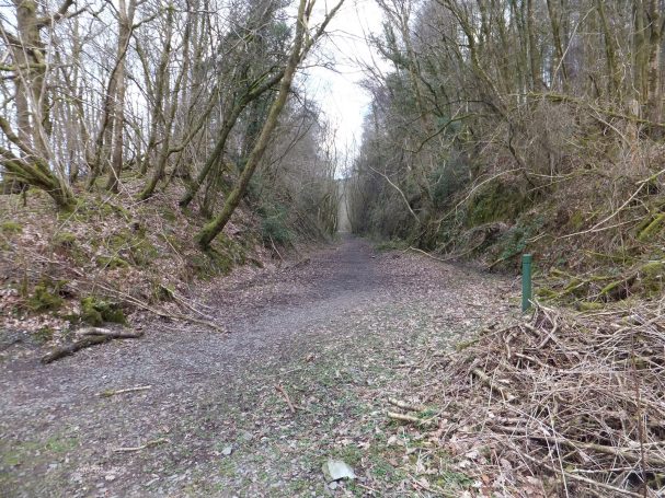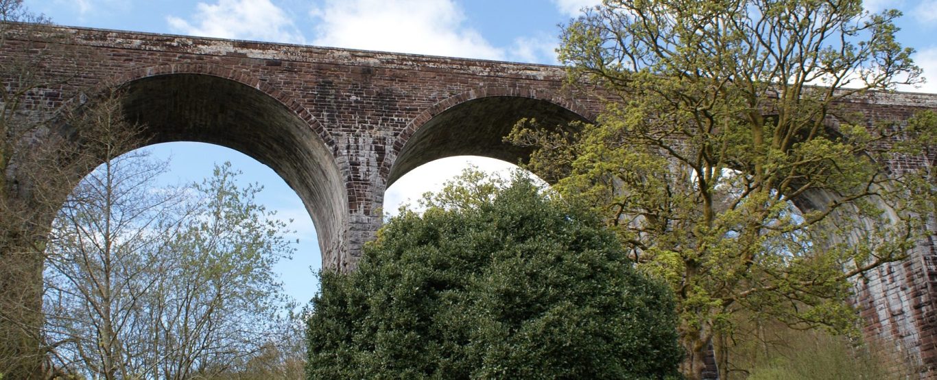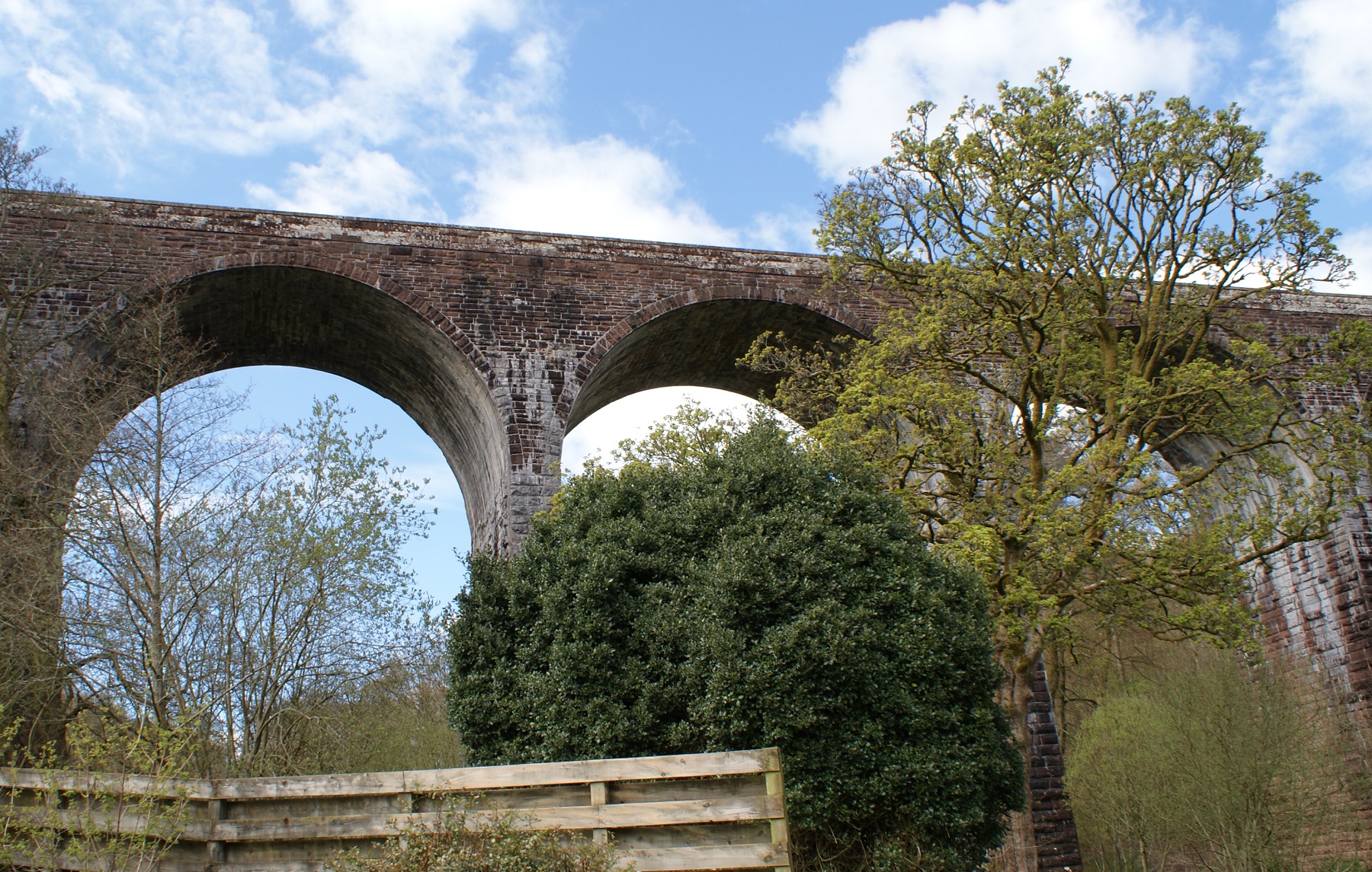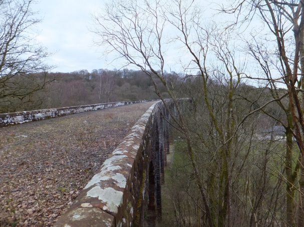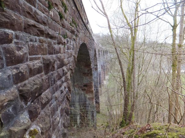 Some pictures of Goldilea Viaduct west of Dumfries, entrance to "the long wood". This viaduct formerly carried the Dumfries-Castle Dougklas-Kirkcudbright branch line of the (former) Glasgow and South Western Railwayy over the valley to the NW of Goldielea House, and within its policies. It is built on a pronounced curve, and crosses the boundary between the parishes of Troqueer (to the NE) and Lochrutton (to the SW)